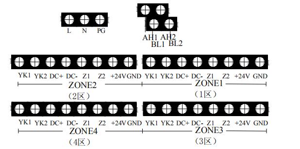 +24V、GND:各區(qū)的輔助電源輸出端子,為現(xiàn)場的系統(tǒng)設備如聲光警報器、氣體噴灑指示燈和輸出模塊供電。
